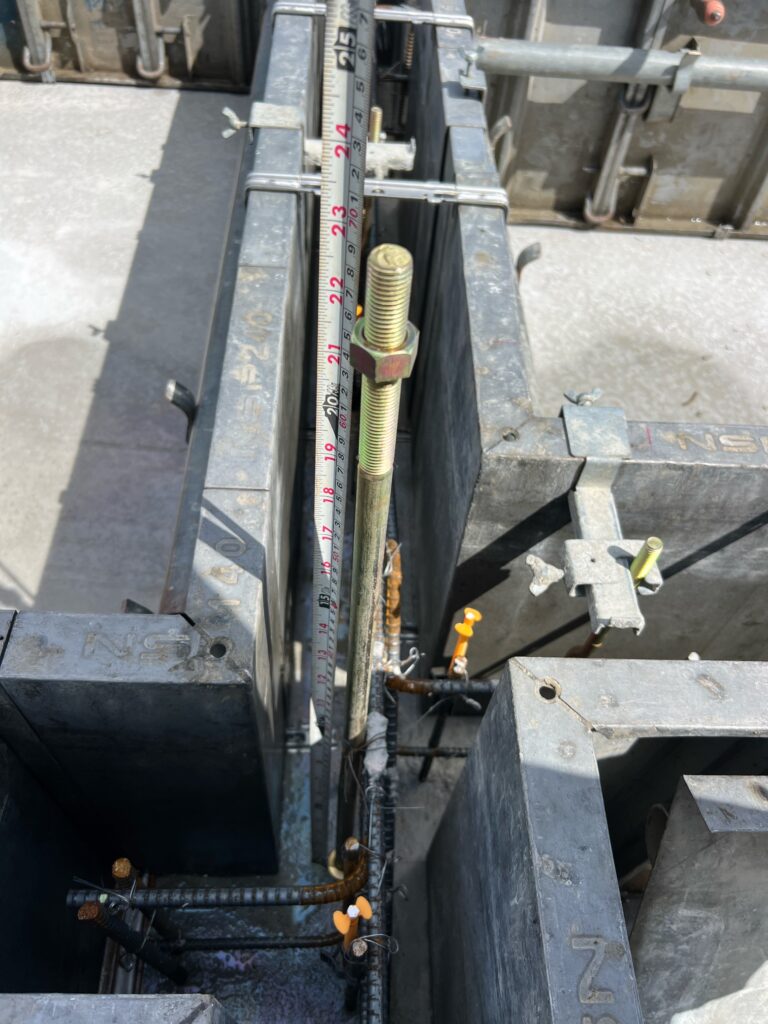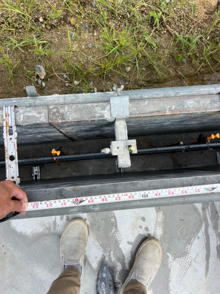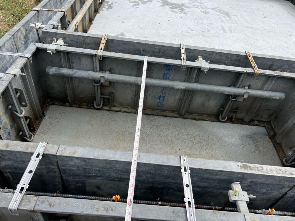 基礎の型枠の中で鉄筋やアンカーボルトの