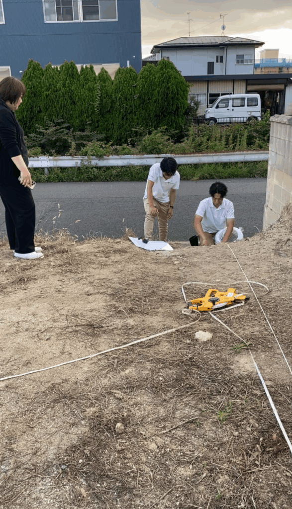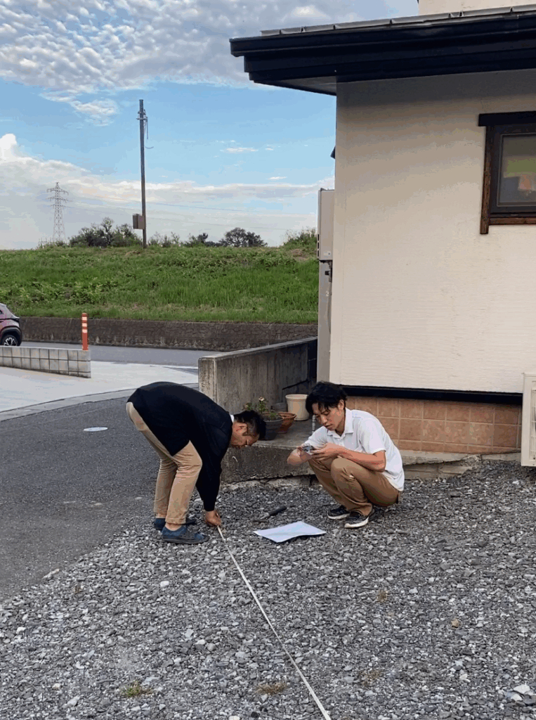 地縄張りとは、建物の位置や大きさを縄で地面に示す作業のことです!
