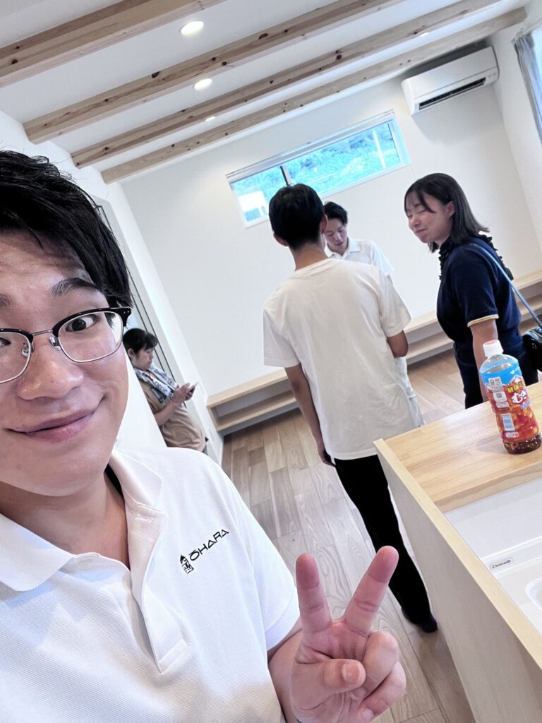 工務の加藤が説明をしている様子を、こっそり自撮りしましたが、奥さんにばれました(笑)