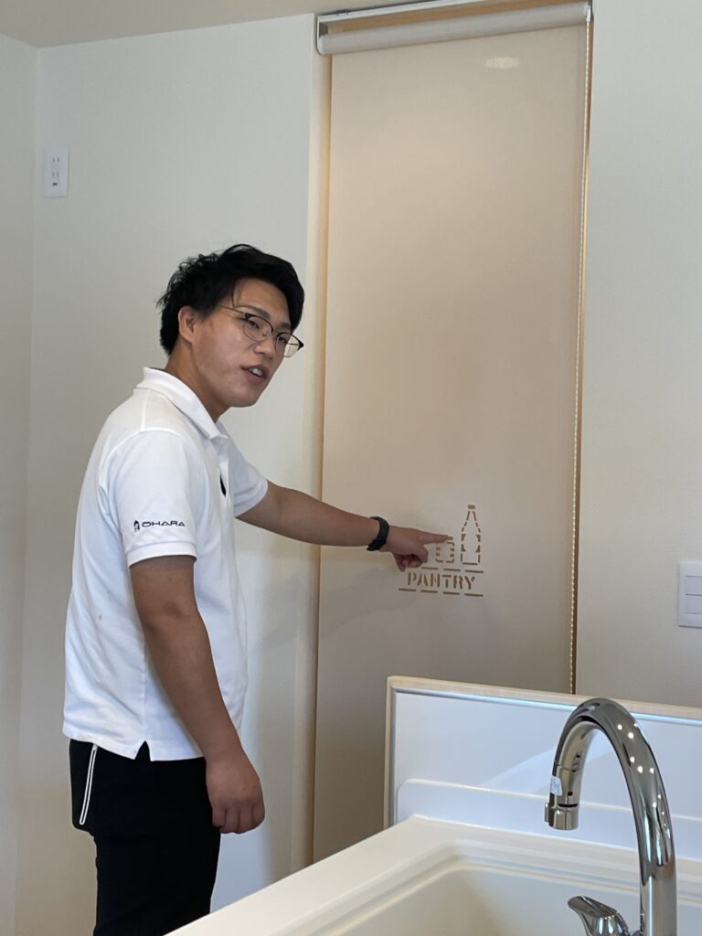 H様がパントリーにチョイスされたロールカーテンがもう、めちゃくちゃかわいいんです!