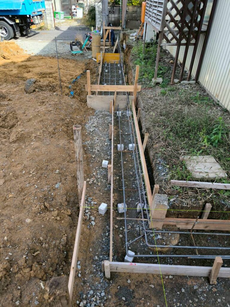 こちらのように、ブロックを積む部分には、配筋と、捨てコンを打設していきます。
