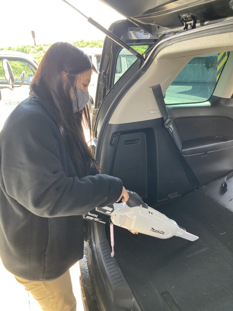 こちらは総務の高橋が車内掃除をしている様子です。