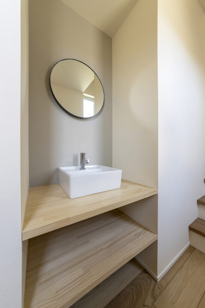 S様邸はお風呂や洗面スペースを2階においているので1階に手洗いの場所があるのはとっても便利です♪