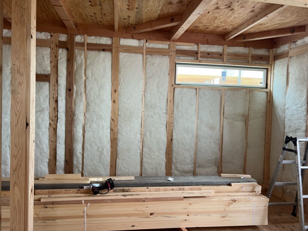 これから壁の中がふかふかの断熱材で満たされていくと思うとワクワクします!