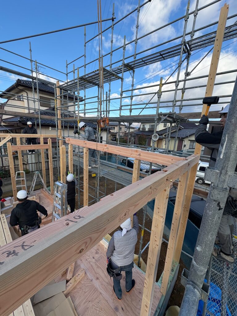 本宮市仁井田で建築中のT様邸では、上棟を迎えました!