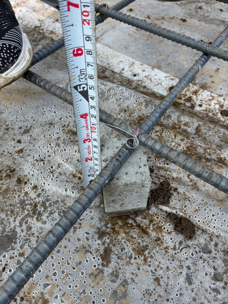 この厚みが足りないと、鉄筋が錆びて基礎が長持ちしなくなる