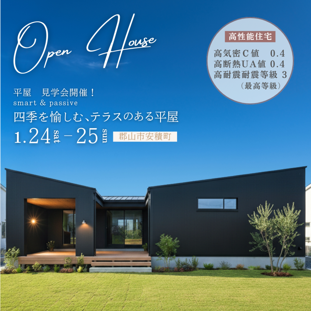 郡山市安積町「インナーテラスを愉しむ平屋」完成見学会が開催されます!