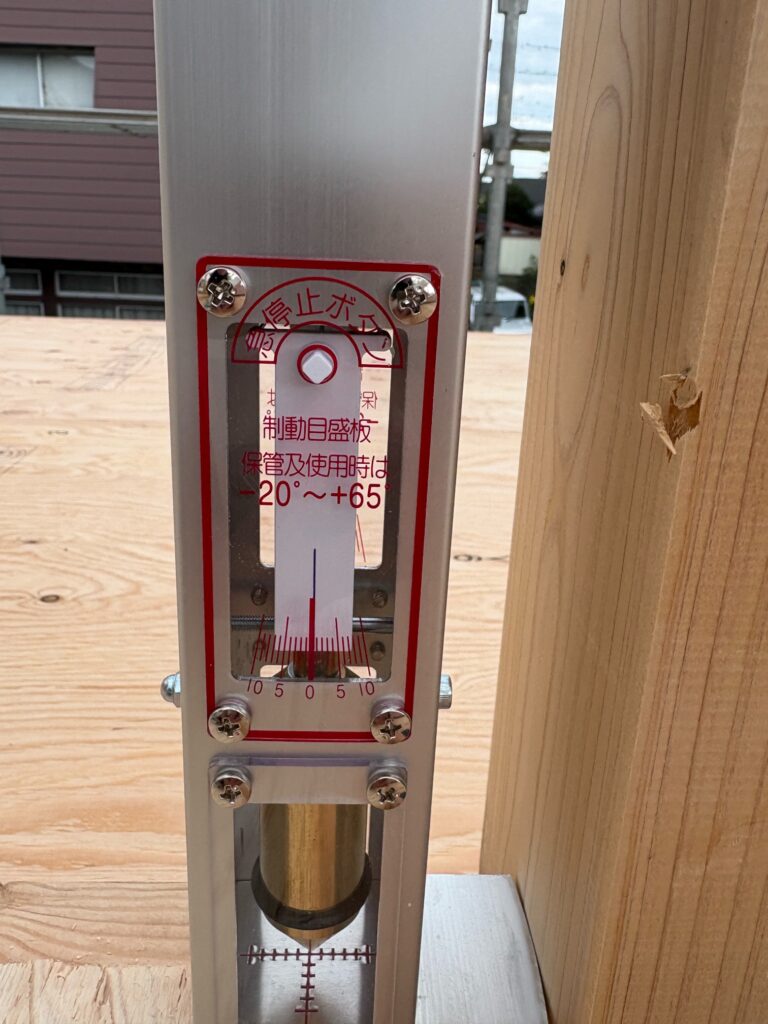 上の写真の針が傾いていると柱が傾いている証拠なんです!