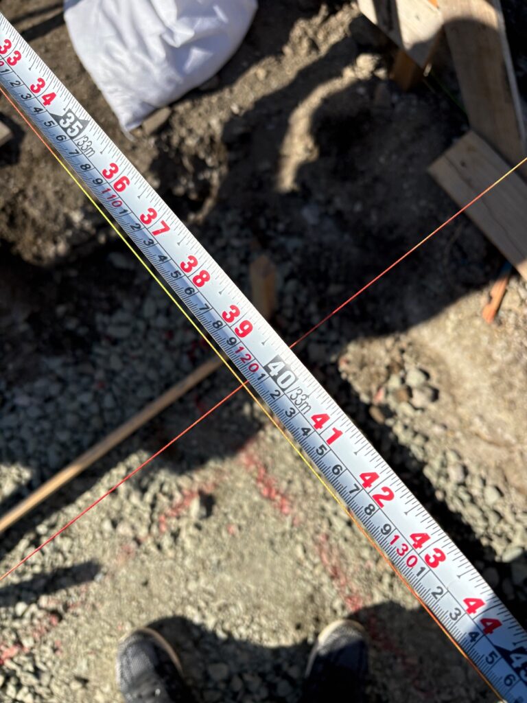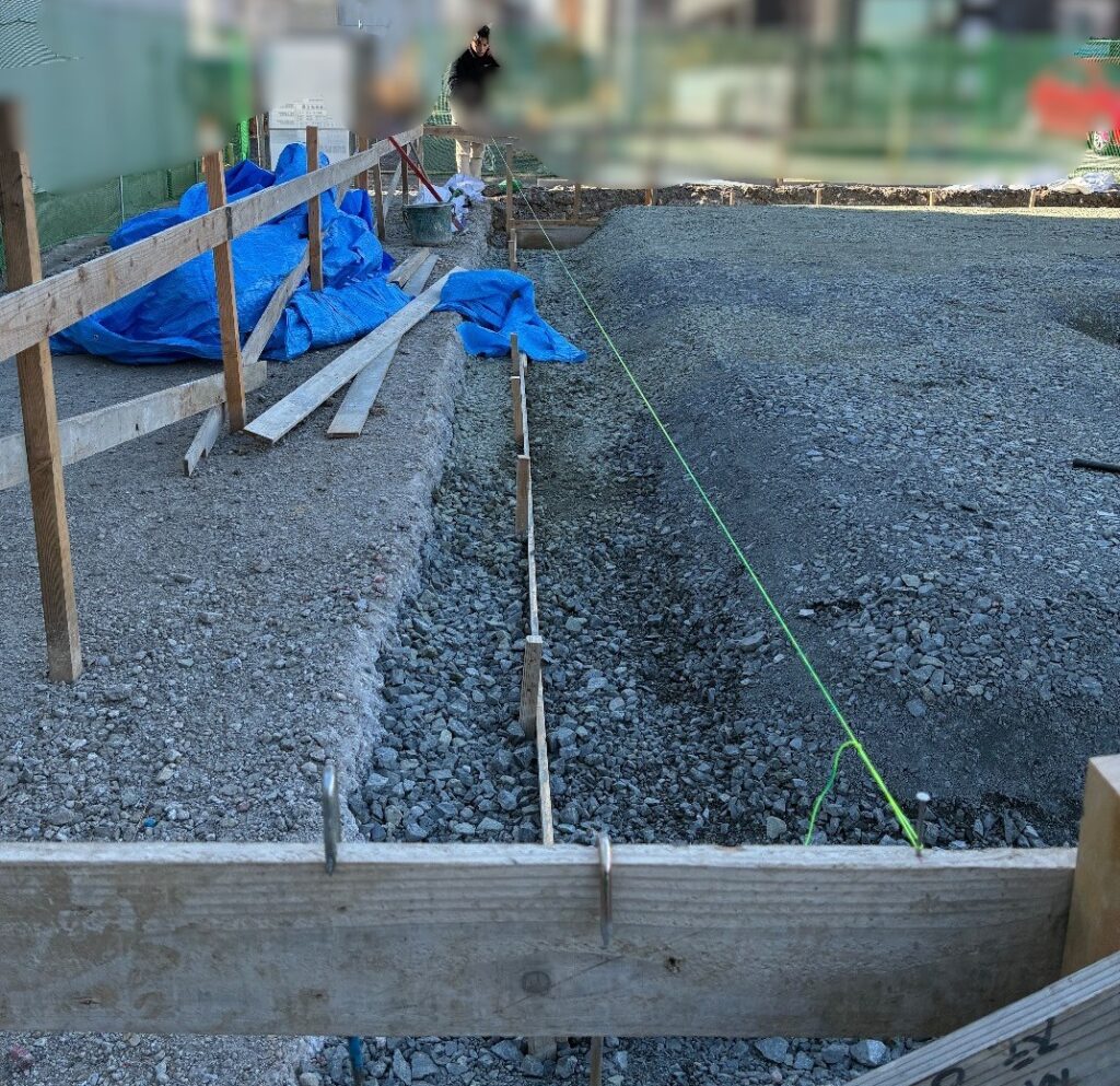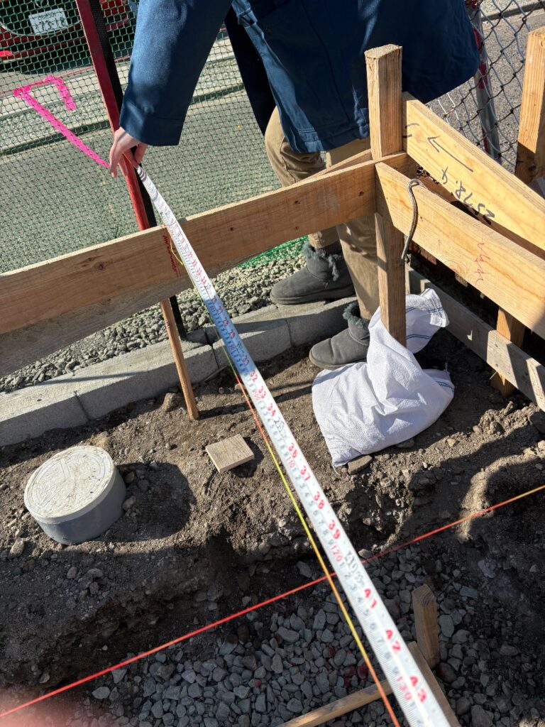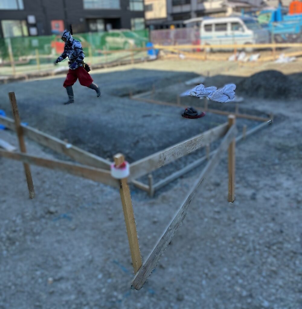 家を建てる前に、正確な位置や高さを出すためのとても重要な工程です。