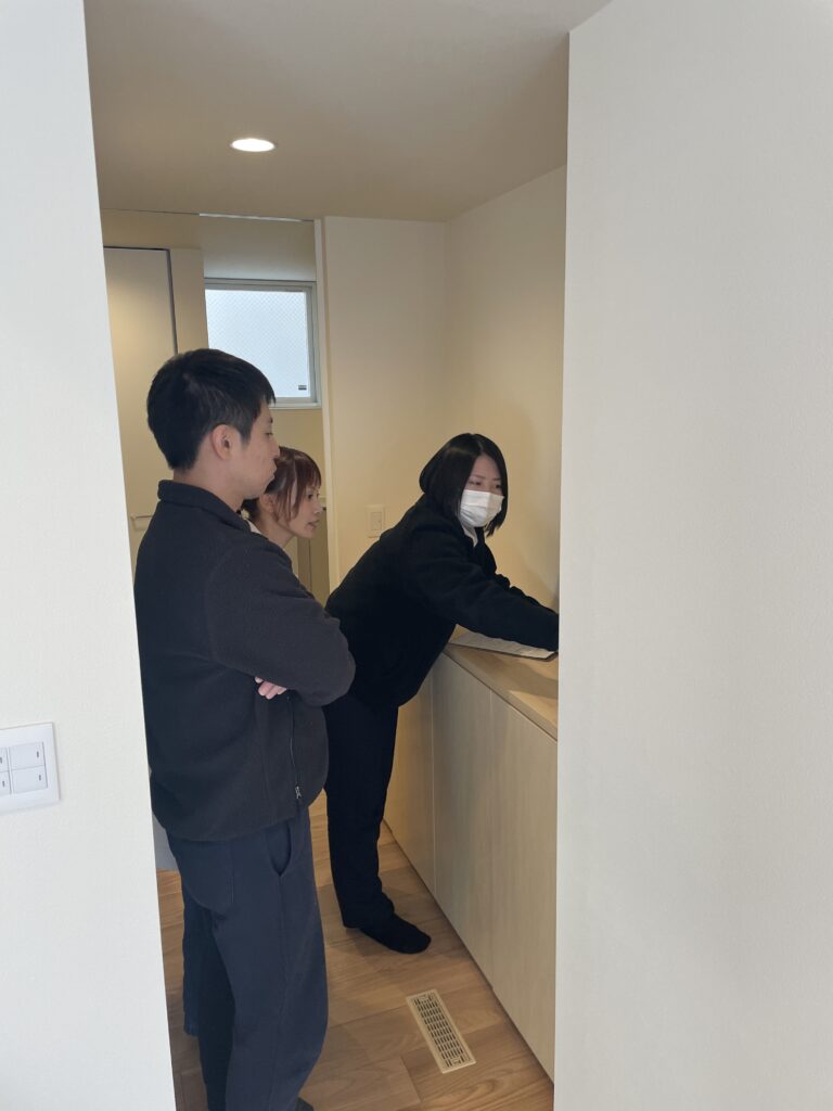 キッチンやお風呂、収納の使い方など、実際の生活をイメージしながら確認していきます。