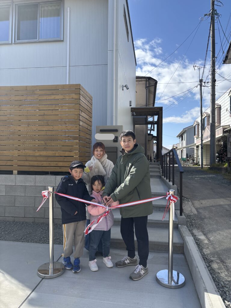 ご家族みなさんでハサミを持っていただき、いよいよお引き渡しという実感が湧く瞬間です。
