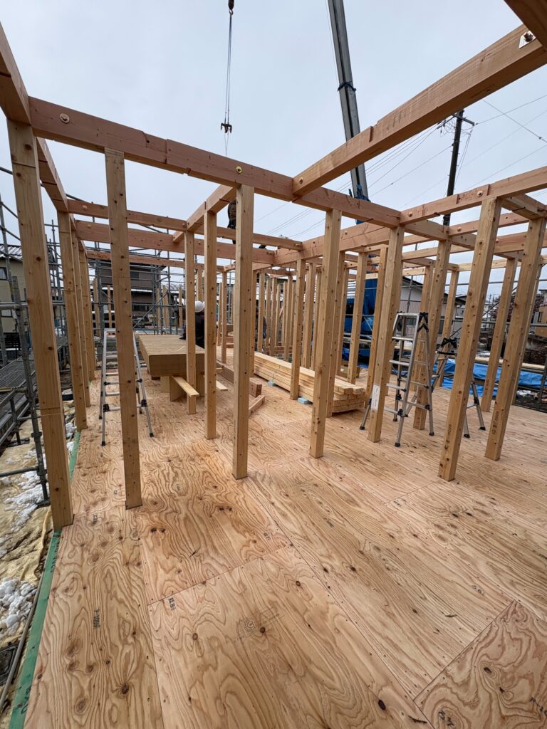 さて、現在、郡山市久留米で新築注文住宅を建築中のJ様邸では、いよいよ上棟されました!!!