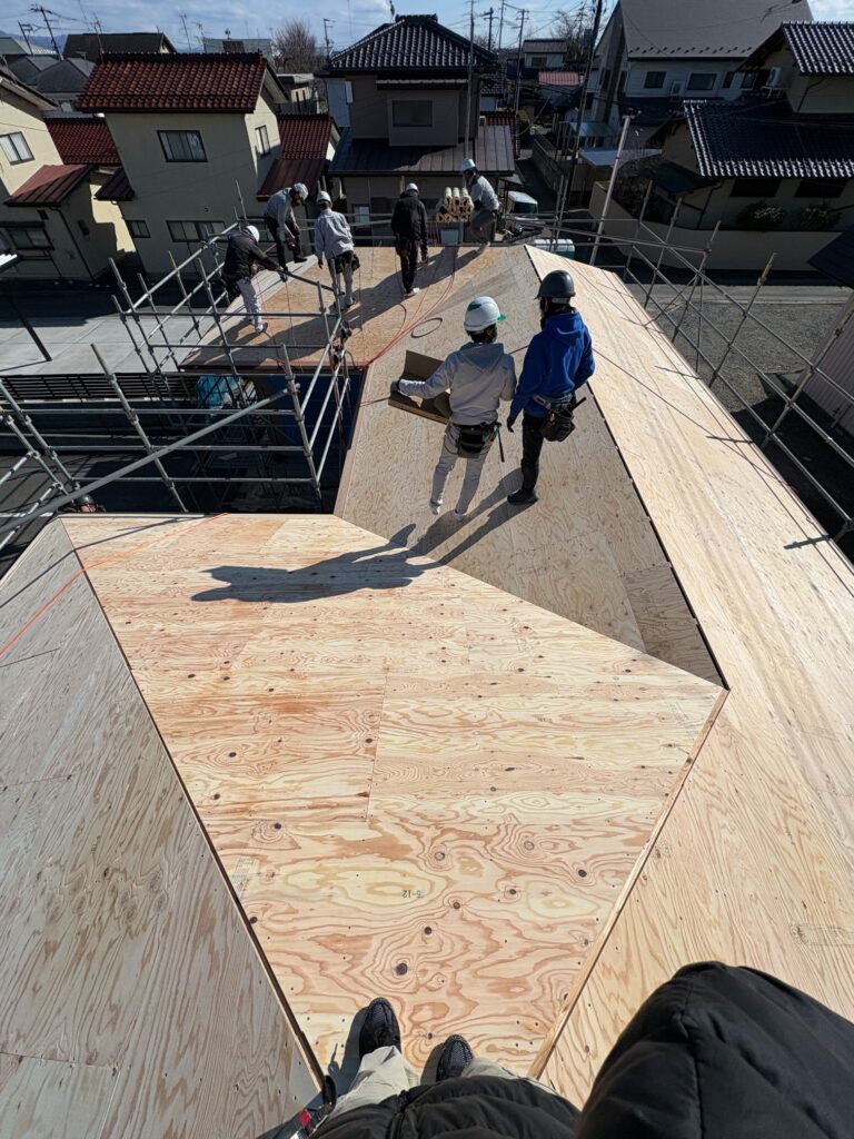 この後、ルーフィングという防水シートの施工をして