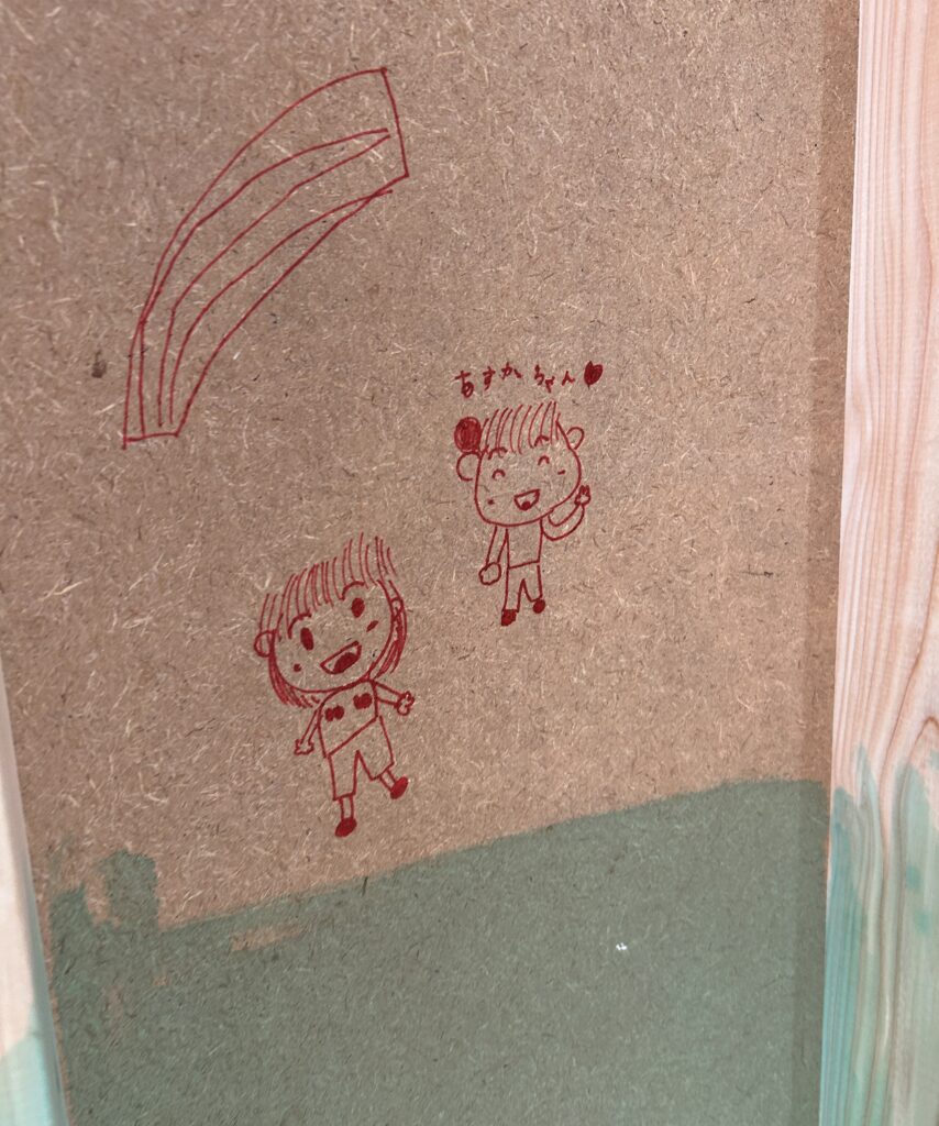 先日、J様邸にJ様と一緒に行った際、お子さんが耐力壁に川崎明寿香を書いてくれました、、、!💛