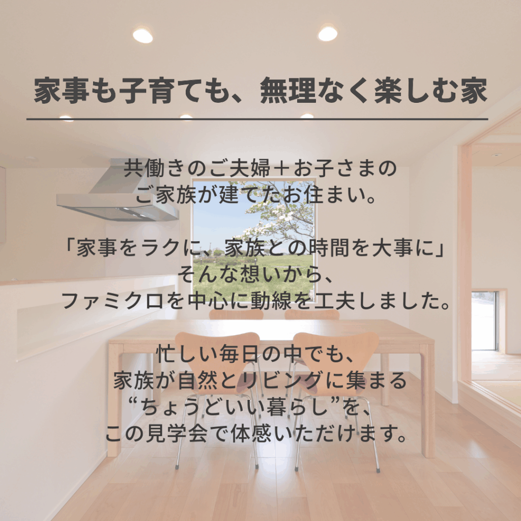 ファミクロで家事楽&趣味を楽しむ家【見学会】郡山市亀田