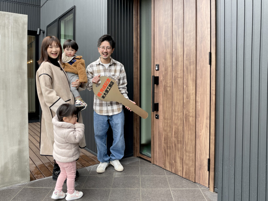 奥さま:みゆきさん、最初に出会ってから今まで、本当にたくさんのサポートをありがとうございました。初めての家づくりで不安も多かったですが、一つひとつ丁寧に話を聞いて、解決へ導いてくださり、本当に助かりました。みゆきさん、そしてスタッフの皆さんが素晴らしいお家を一緒につくりあげてくださって、感謝の気持ちでいっぱいです。今後ともよろしくお願いします!